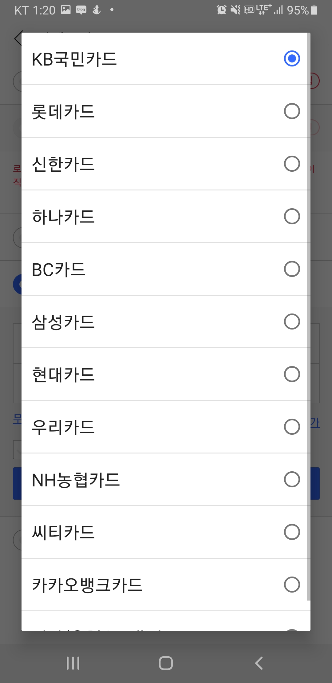 카드는 아래와 같이 선택해서 결제할수 있습니다.