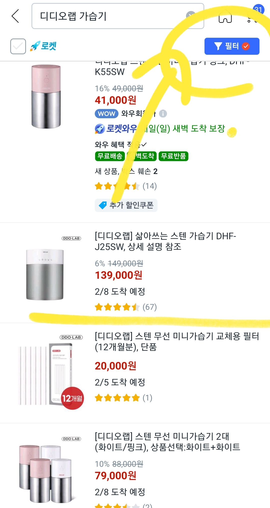 3. 세번째로, 쿠팡앱 검색창에서 [필터] 기능을 통해 다양한 조회 기능을 사용할수 있습니다.