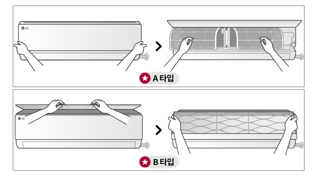 LG 벽걸이 에어컨은 A Type과 B Type으로 구분할 수 있습니다.