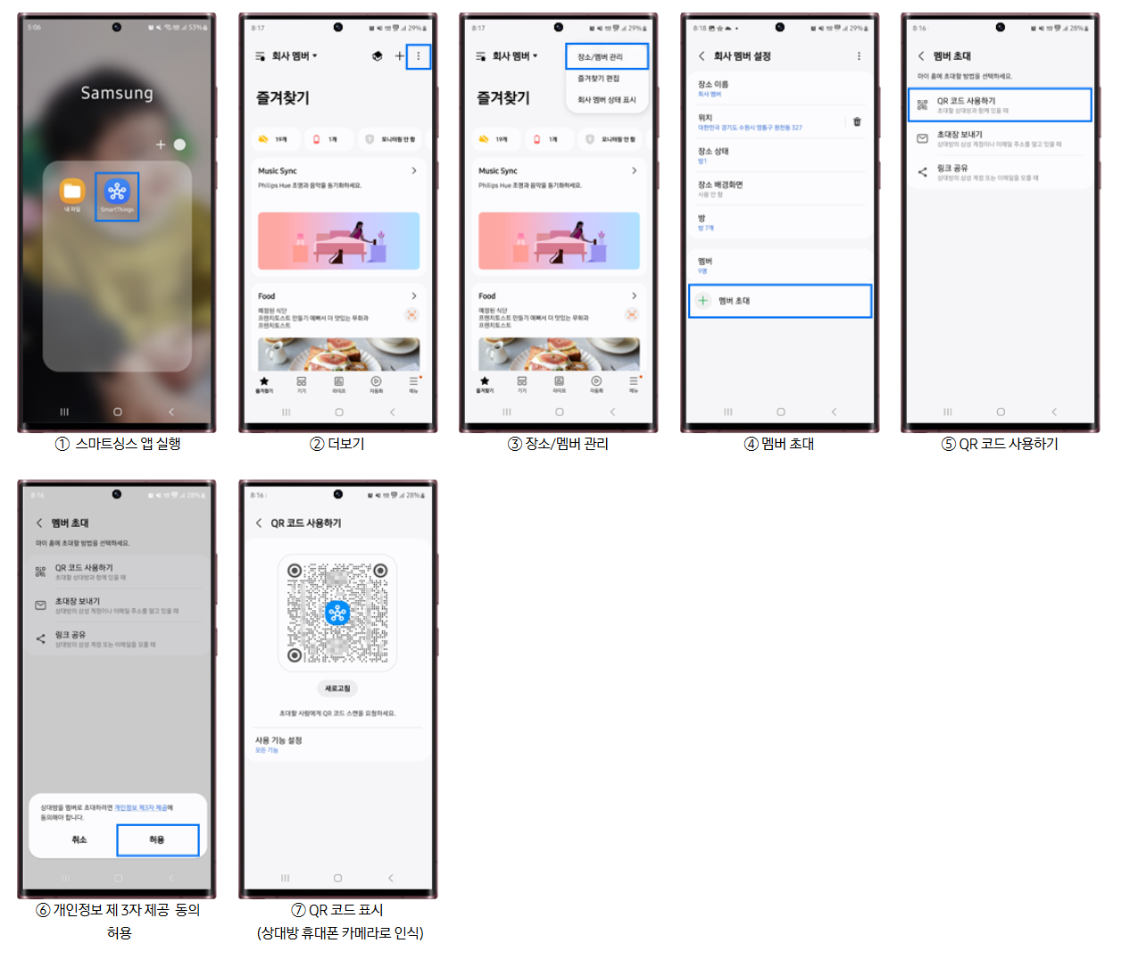 삼성 스마트싱스 QR, 링크 멤버 초대 및 삭제하기