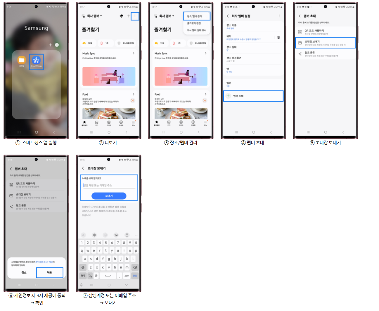 삼성 계정 또는 이메일 주소를 통해 멤버를 초대할 수 있습니다.
