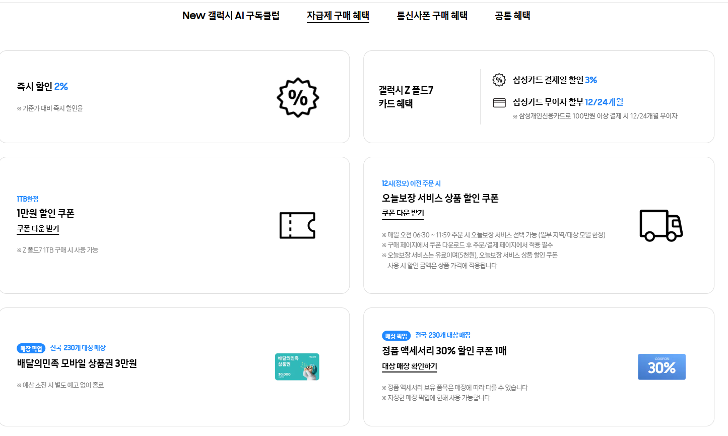 - 사용처: 삼성스토어 230개 지정 매장 (대상 매장 확인 필수)
