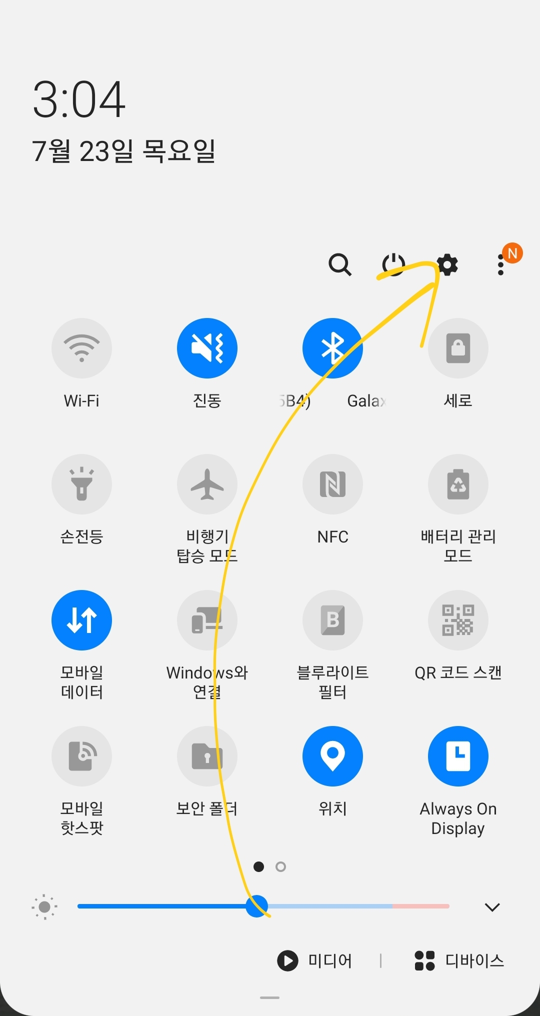 1. 가장 먼저 Gear (톱니바귀) 모양의 설정 화면으로 들어가주십니다.