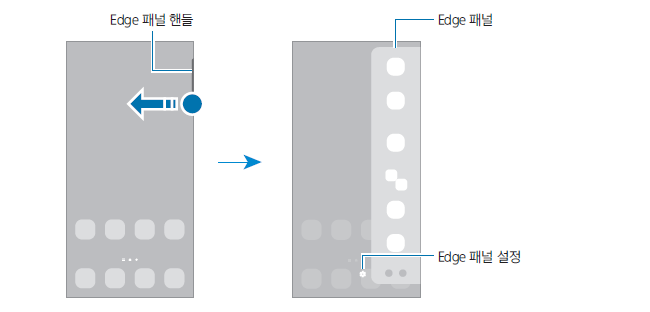 Edge 패널 핸들을 화면 바깥쪽에서 안쪽으로 드래그하시면 됩니다.