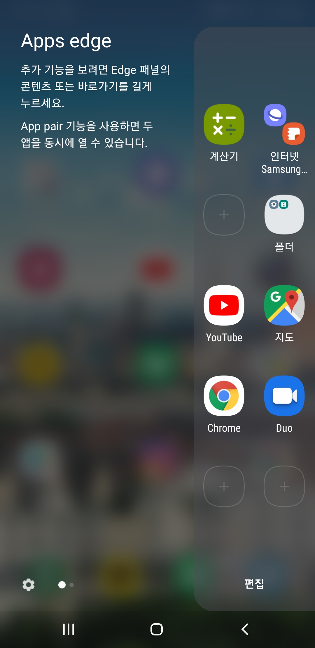 엣지스크린 기능안에 있는 기능으로 Edge 패널을 이용해 자주 사용하는 앱이나 기능을 빠르게 실행할 수 있습니다.