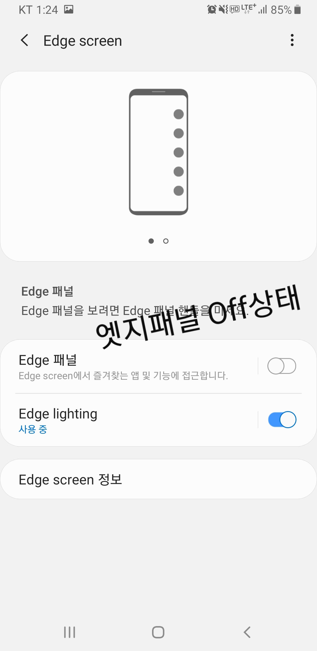 해당 목록에서 엣지 패널이나 엣지라이팅 설정을 변경할수 있습니다.
