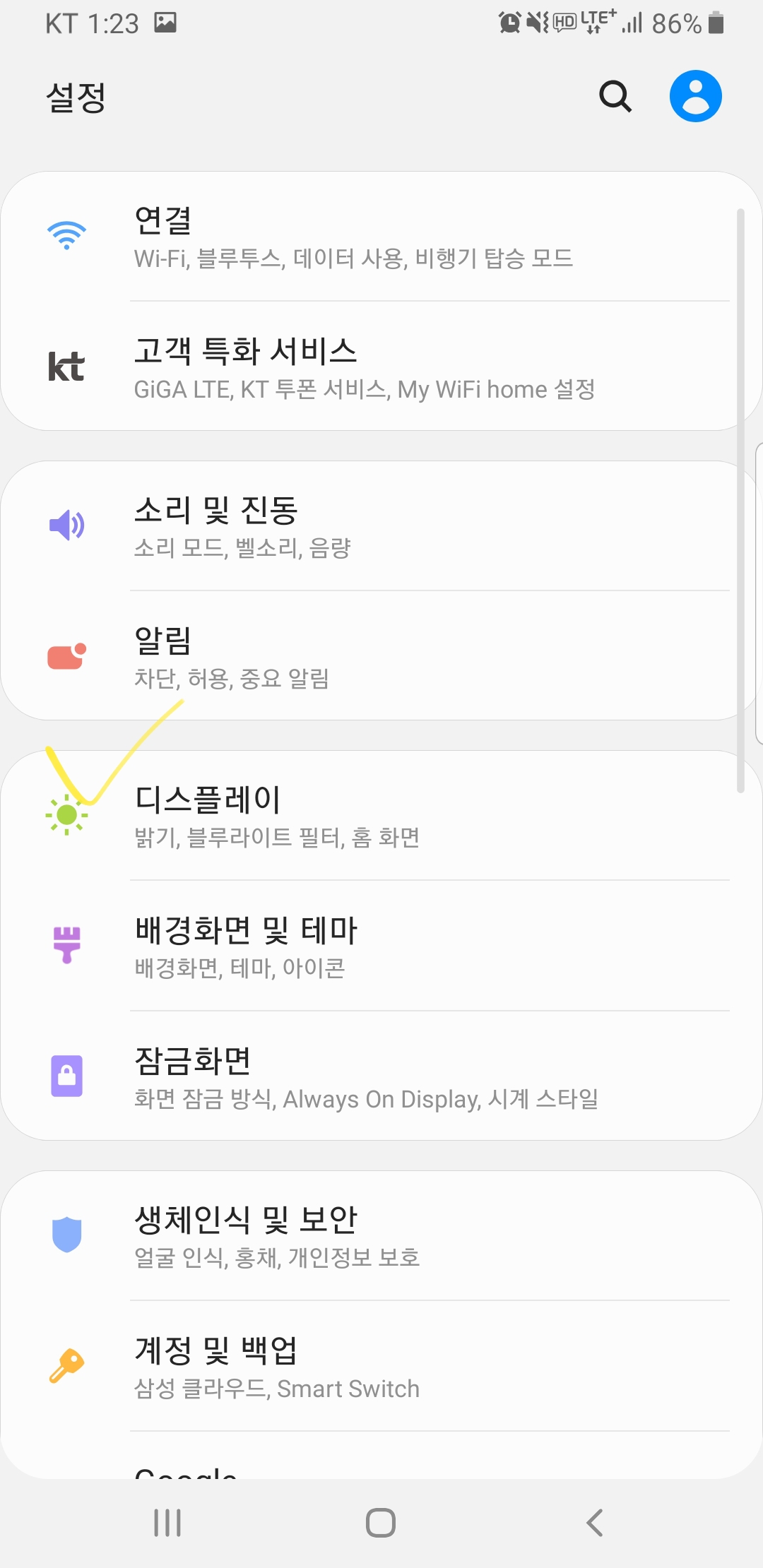 2.디스플레이 설정으로 들어가주시기 바랍니다.