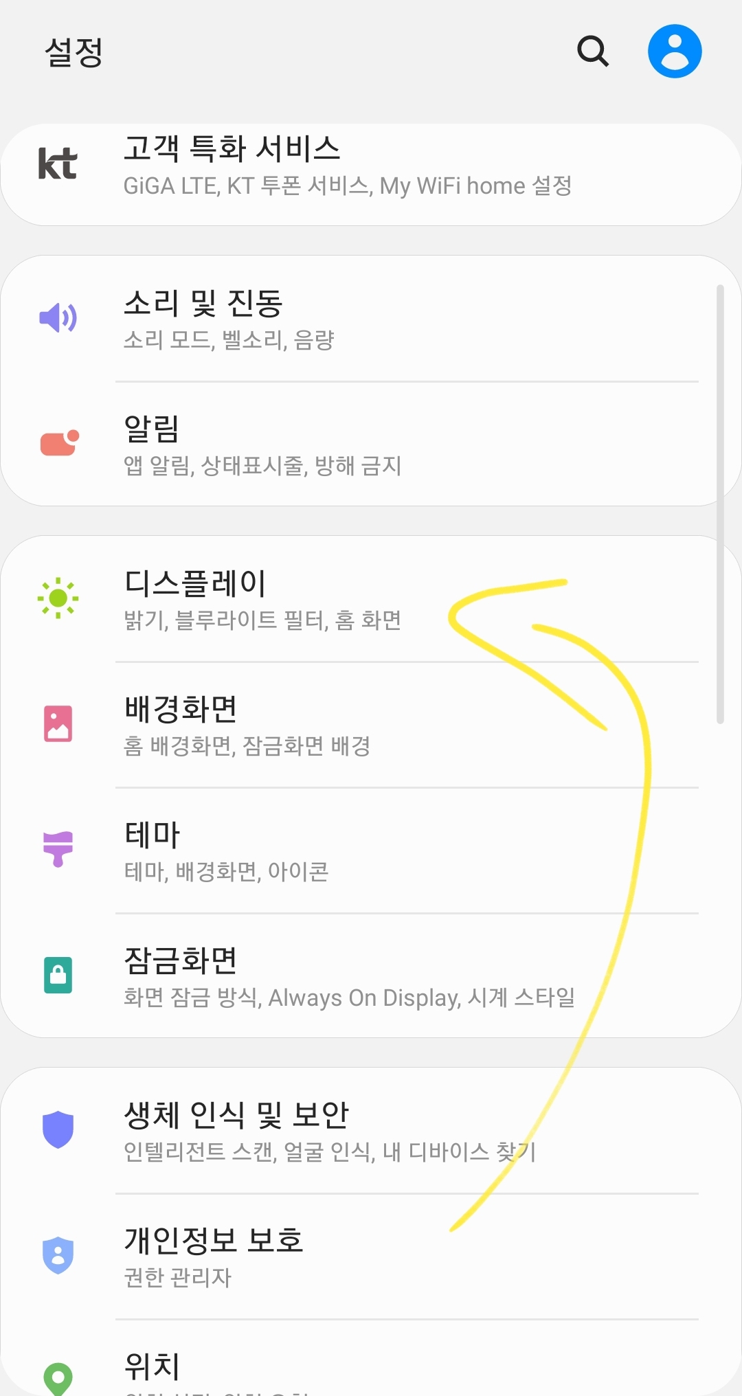 1. 첫번재로. 설정 -> 디스플레이 -> Edge Screen 순서로 가주시기 바랍니다.