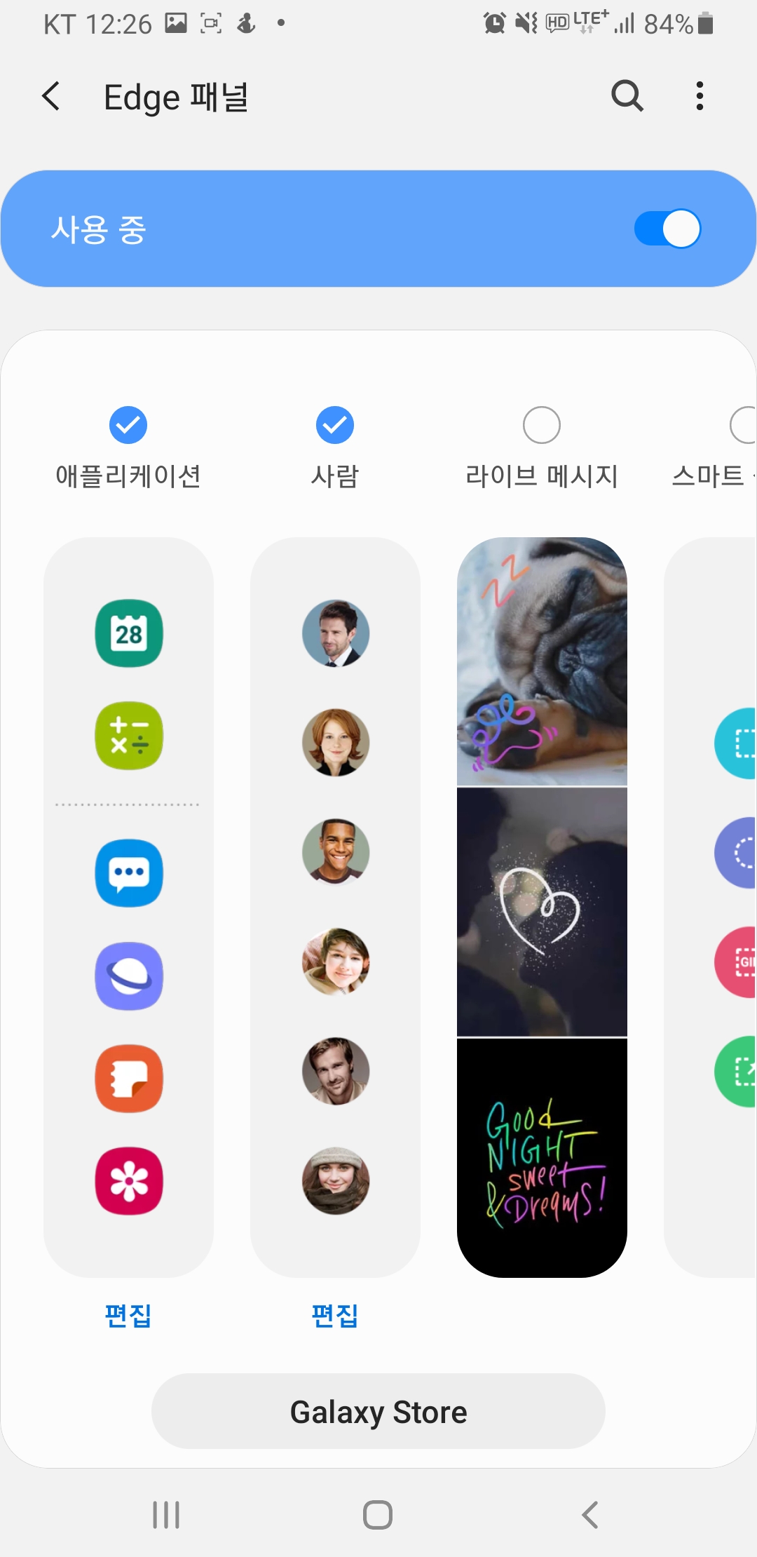 갤럭시 엣지라이팅 엣지패널 패널 기능 사용방법 자세히