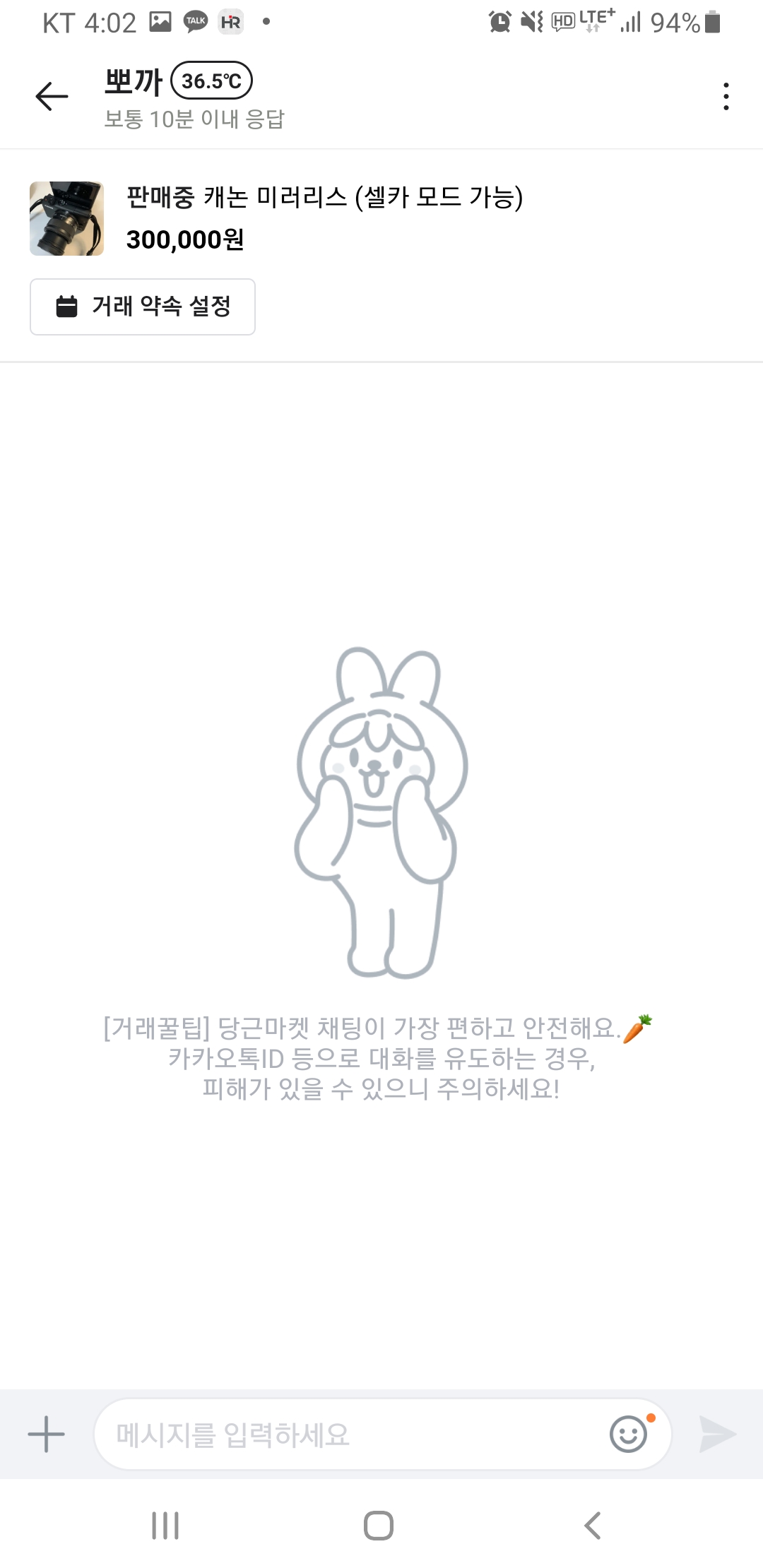 이제 상대방이 구매를 희망하면 아래 채팅으로 거래하기로 항목으로 진행하게됩니다.