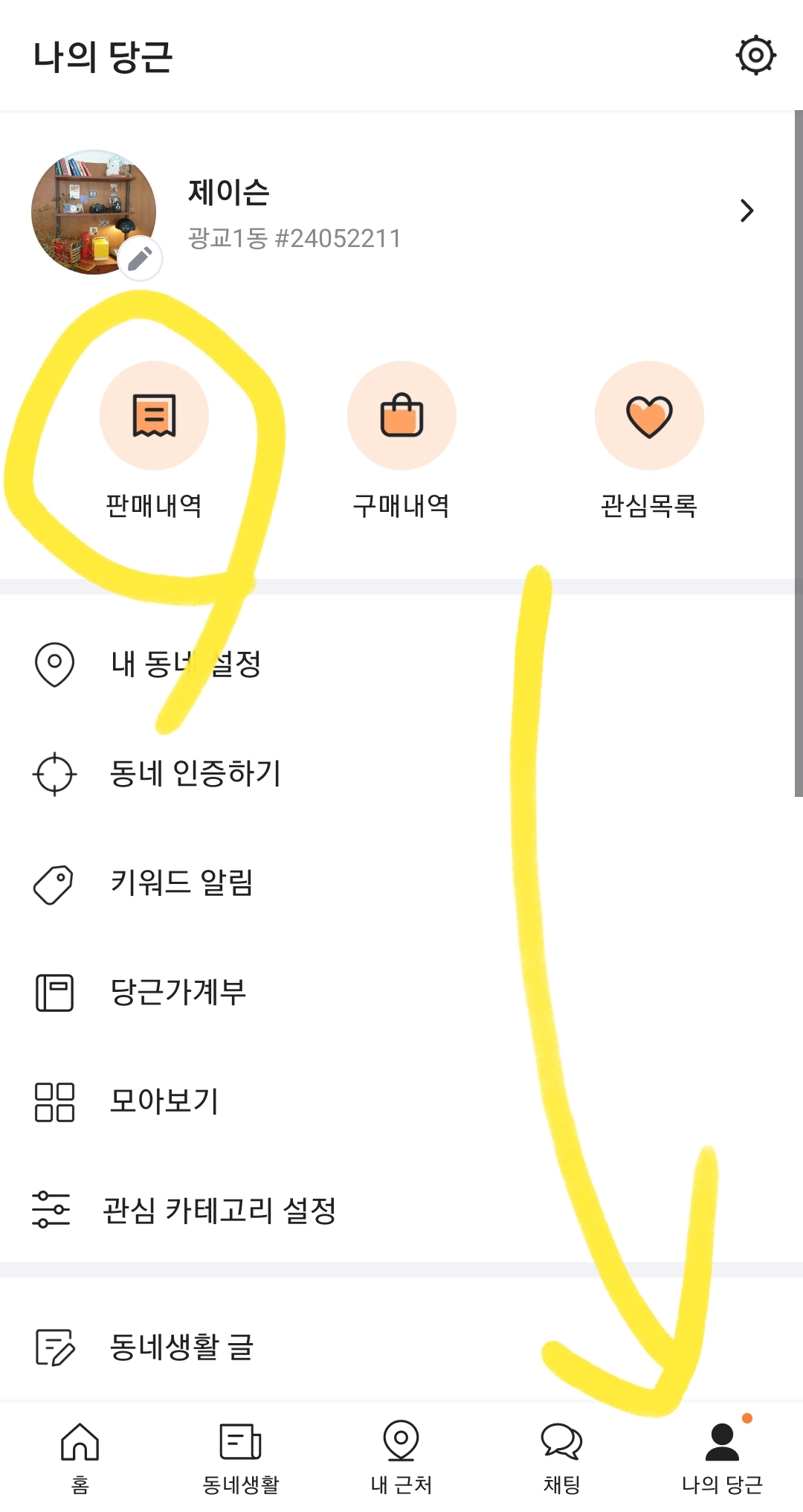 당근마겟 거래방법중 내 물걸을 판매하는 방법을 알아보고자 합니다.